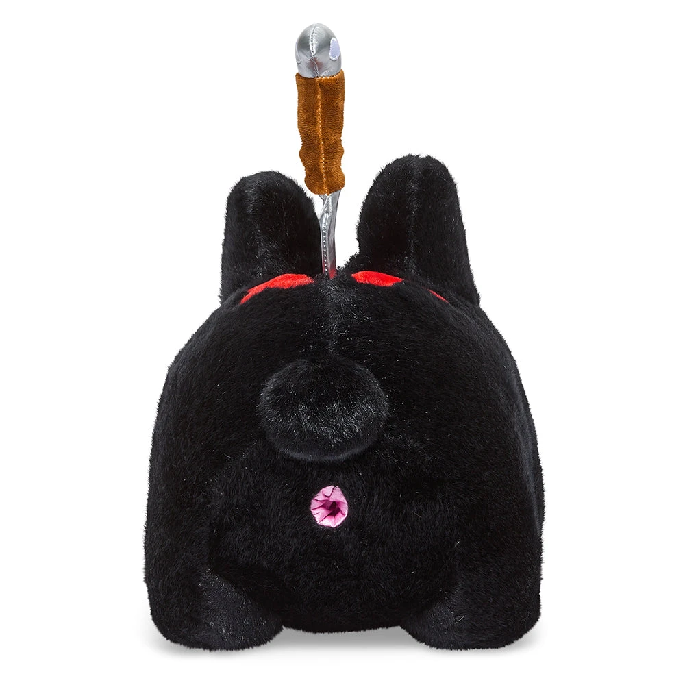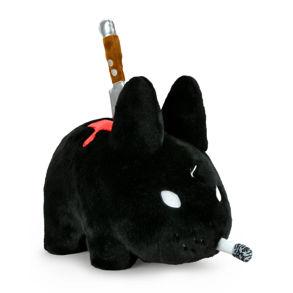 Perhaps he was involved in a hideous kitchen accident. Or maybe he was betrayed by his closest friend. Either way, this 14” plush Backstab Smorkin’ Labbit seems entirely unfazed by the (removable) knife protruding from his back. This black edition is a 2021 Virtual Con Exclusive and limited to 500 pieces.