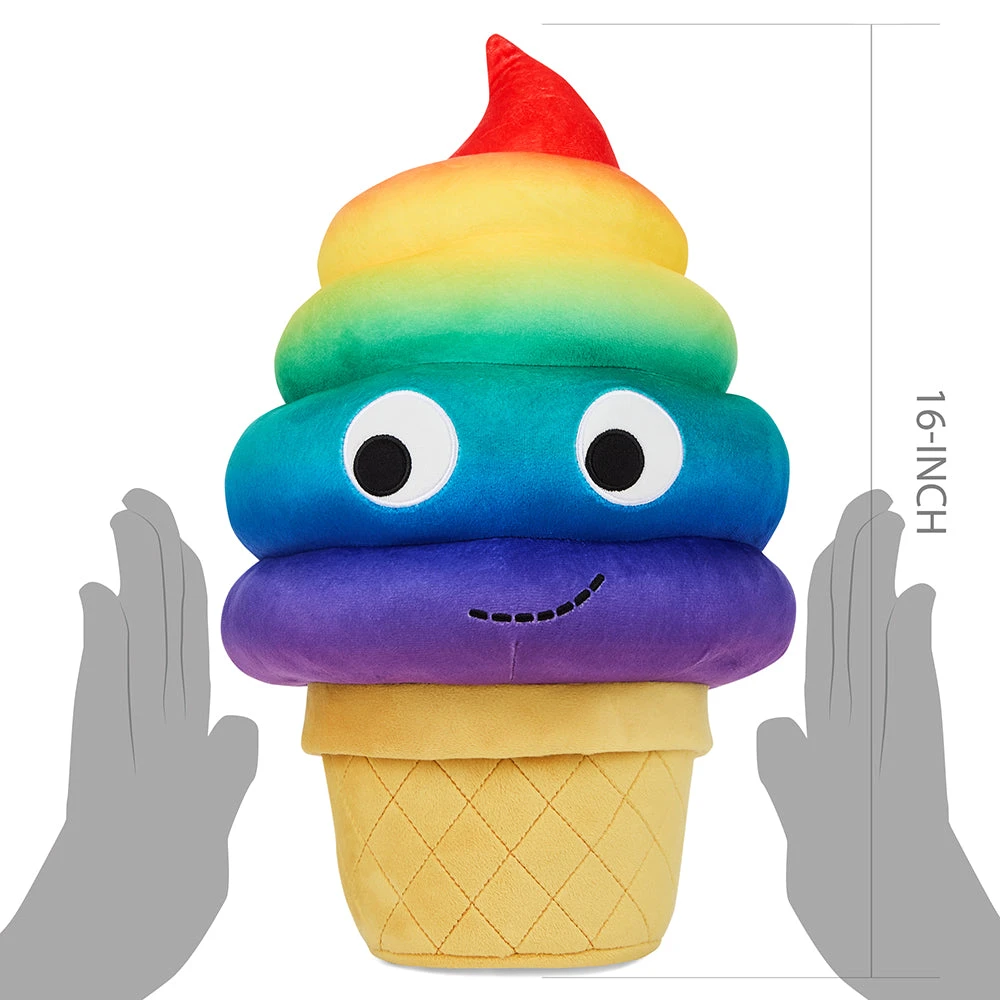 Kidrobot and Yummy World present an all-new twist on the Soft Serve Sally Ice Cream plush with the rainbow version of this best selling Yummy World plush! I scream, you scream, we all scream for ice cream plush! Especially if its soft serve ice cream! Now… if it’s a delicious cold smooth creamy sort of snuggle you need… look no further! Serving up an extra helping of rainbow swirl delight, this giant “Cone of Wonder” is exactly what the fun Doctor ordered! It’s like a day at the County Fair, right there at home! Perfect for those of you with a sweet tooth! Standing 16-inches tall and made with soft premium plush, the Yummy World Rainbow Soft Serve Sally Ice Cream Plush is a must-have!