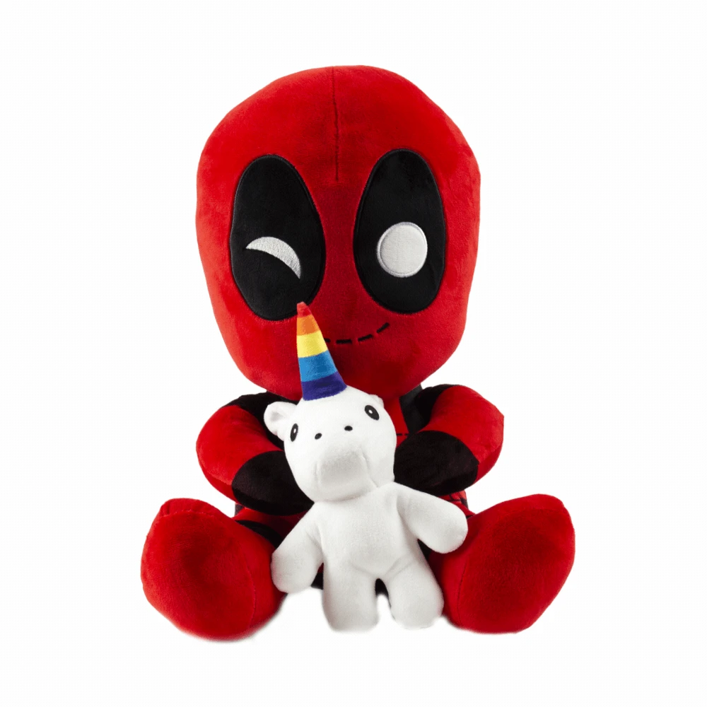 Love Deadpool? Get the Deadpool Riding a Unicorn plush in a more compact non-vibrating plush with the smaller non-vibrating Deadpool Riding a Unicorn Phunny Plush version.