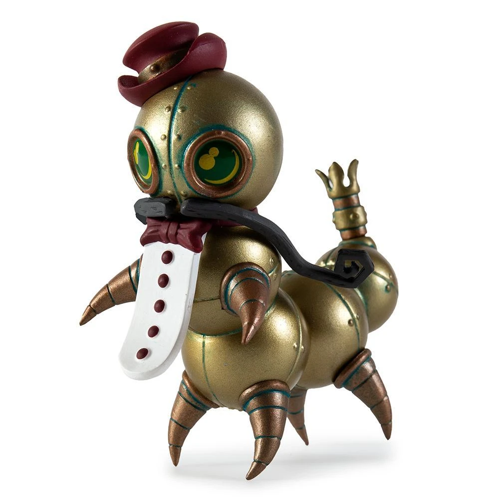 Welcome to Mechtoria! Kidrobot pulls back the curtain to the long forgotten characters of the world of Mechtoria. Follow us down the darkened cobbled streets and meet the artistic cast of Doktor A’s almost unimaginable world! Gamblers, musicians, entertainers, and more make up the cast of The Mechtorians in this all-new collectible Kidrobot Mini Art Figure Series by artist Doktor A.