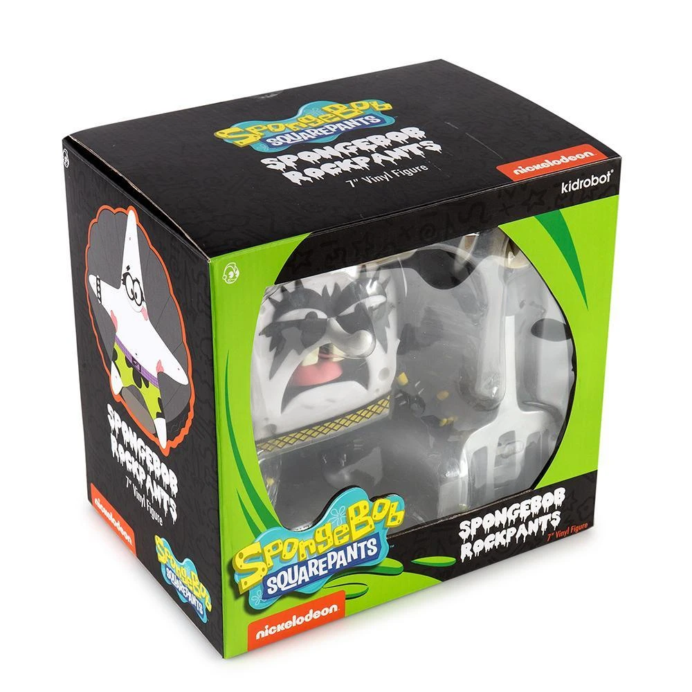 Mr. SquarePants put away his collar and tie and he’s here to rock! From the popular Nick tv show that taught us best friends can be found in starfish and that burgers are best served below sea level comes a freshly-caught take on one of SpongeBob’s loudest personas: the SpongeBob RockPants Art Figure by Kidrobot! That’s right, Kidrobot has paired up with Nickelodeon to make your SpongeBob rock and roll dreams come true – in vinyl. This limited edition SpongeBob figure stands at a towering 8-inches of pure rocking bliss in his best death metal studded concert attire, SpongeBob and Kidrobot are ready to make your collection scream black. With his pal Patrick Star, this stand out piece is ready to shake up your vinyl toy collection!
