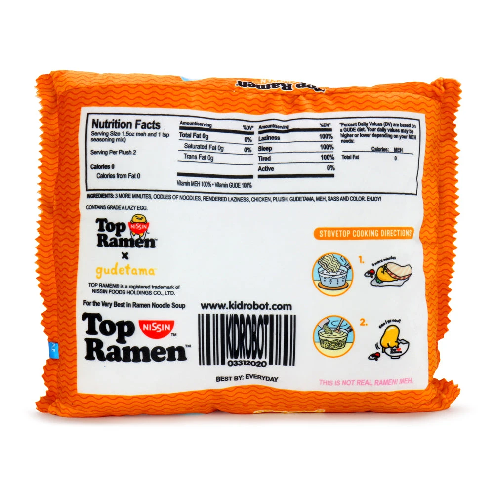 Kidrobot has teamed up with Nissin® and Sanrio® to bring to life the most lethargically cute mashup of all time with Top Ramen® and Gudetama™ the Lazy Egg! Introducing the Nissin Top Ramen® x Gudetama Large Crinkle Plush – Chicken Edition from Kidrobot, which features the Original Top Ramen Noodle package in premium cuddly plush form. Gudetama makes its lazy debut on this 16″ long plush pillow version of Top Ramen’s® signature package that crinkles when you touch it.