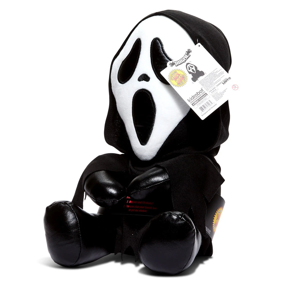 What’s your favorite scary movie? Get ready to scream… This cuddly version of the famous slasher will make you scream… with delight! The Ghost Face HugMe Shake Action Plush is an extra huggable 16-inch-tall plush complete with Kidrobot’s signature squeeze-sensitive vibration feature. Shake action when you hug it! Shake action when you clap! Batteries included.