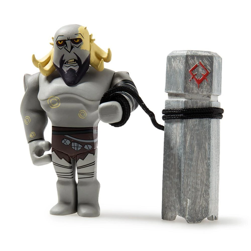 The Kidrobot design team and the God of War creative team together decided on this harder-edged Kidrobot stylization of the game characters would offer a juxtaposition to what other toy designers would offer and be more suitable for the inherent strength in the characters as opposed to the softer style.