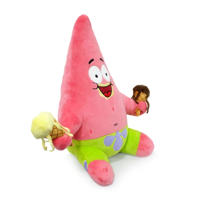 Kidrobot brings everyone’s favorite pink sea star to life with the new SpongeBob SquarePants Patrick with Ice Cream 16″ HugMe shake action plush! Ice cream cones in hand, Patrick Star is about to jump into your arms from deep down in Bikini Bottom for a big sloppy hug! As with all HugMe plush, this comes with Kidrobot’s signature vibrating shake action unit with removable batteries for an additional snuggly sensational hug. Shake action when you hug it! Shake action when you clap!