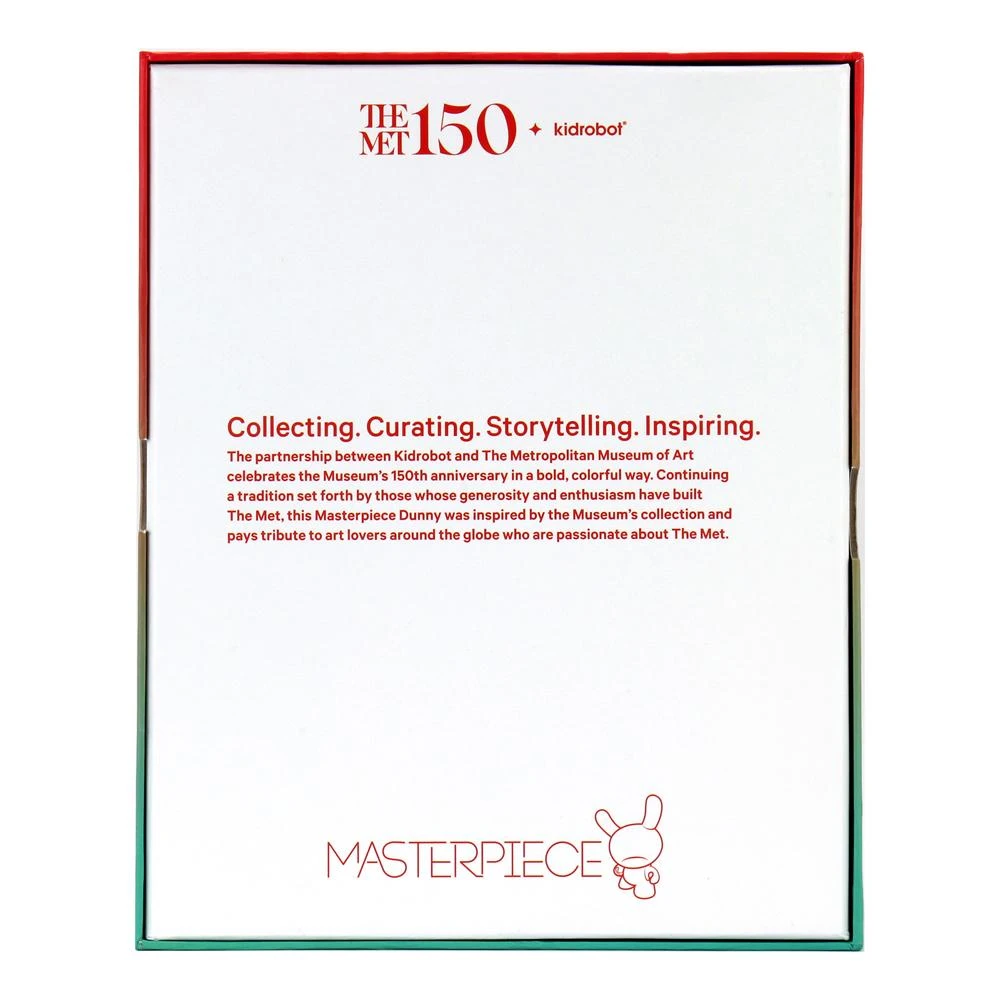 The partnership between Kidrobot and The Metropolitan Museum of Art marks the Museum’s 150th anniversary in a bold, colorful way. Continuing a tradition set forth by those whose generosity and enthusiasm have built The Met, this 8-inch Masterpiece Dunny was inspired by the Museum’s permanent collection and pays tribute to art lovers around the globe who are passionate about The Met.s collection and pays tribute to art lovers around the globe who are passionate about The Met.
