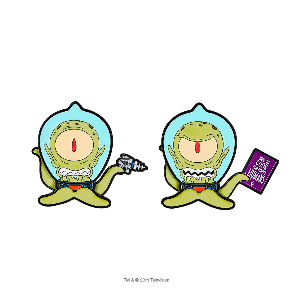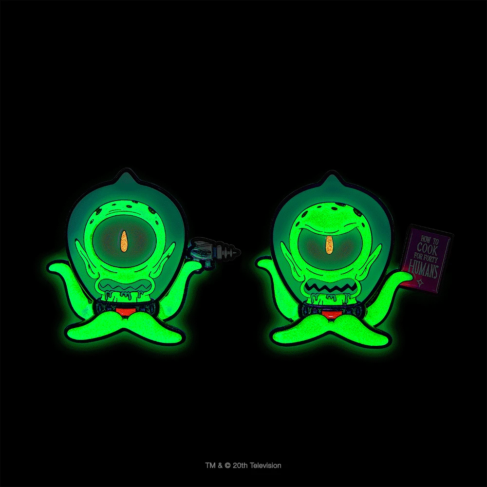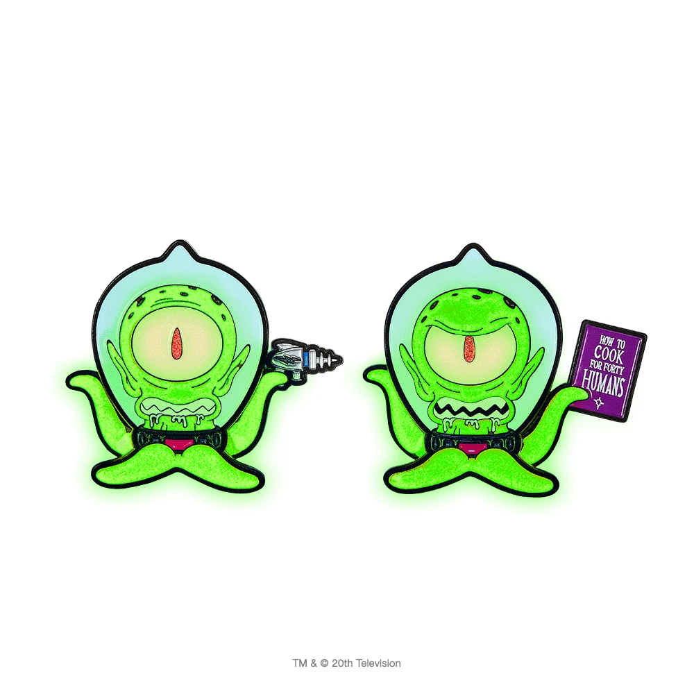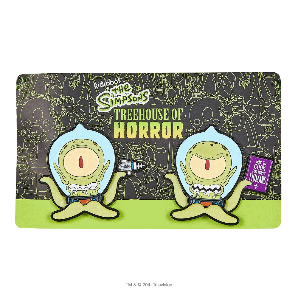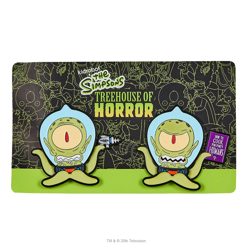 Kang and Kodos have returned! The newest entry in Kidrobot x The Simpsons Treehouse of Horror features everyone’s favorite Rigellians in enamel pin form with The Simpsons Treehouse of Horrors Kang & Kodos Enamel Pin 2-Pack in this exclusive glow-in-the-dark edition. Coming in a 2-pack, these deluxe 2.5-inch enamel pins have adjustable arms and fasten securely to jackets, bags, and more. This special collectible 2-Pack Enamel Pin Set can only be found at Kidrobot.com and IamRetro.com, while supplies last. Limited edition of 1000 pieces worldwide.
