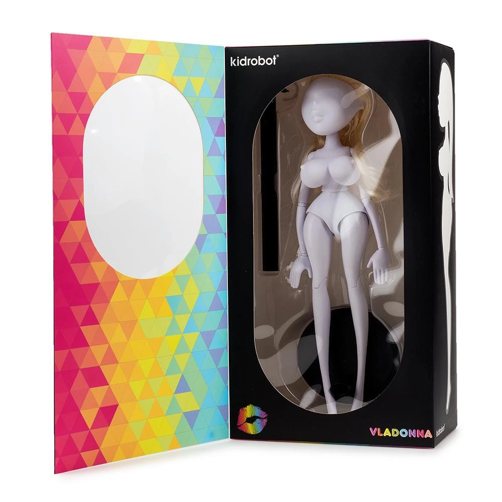 The Vladonna DIY Alternative Fashion Doll is created by an incredible woman who was instrumental in reviving and making the Blythe fashion doll one of the most collectible dolls in the world and an artist who has transformed his artistic creativity into the world of drag and has been drawing versions of Vladonna since he was a boy. Both of these individuals have worked on bringing Vladonna to life for years. Both of them appreciate and respect the curvaceous feminine form from two points of view which make Vladonna such a special creation for Kidrobot to work on. This limited edition DIY customizable version is the first in a line of collectible Vladonna dolls that will be available so don’t miss out on this one.